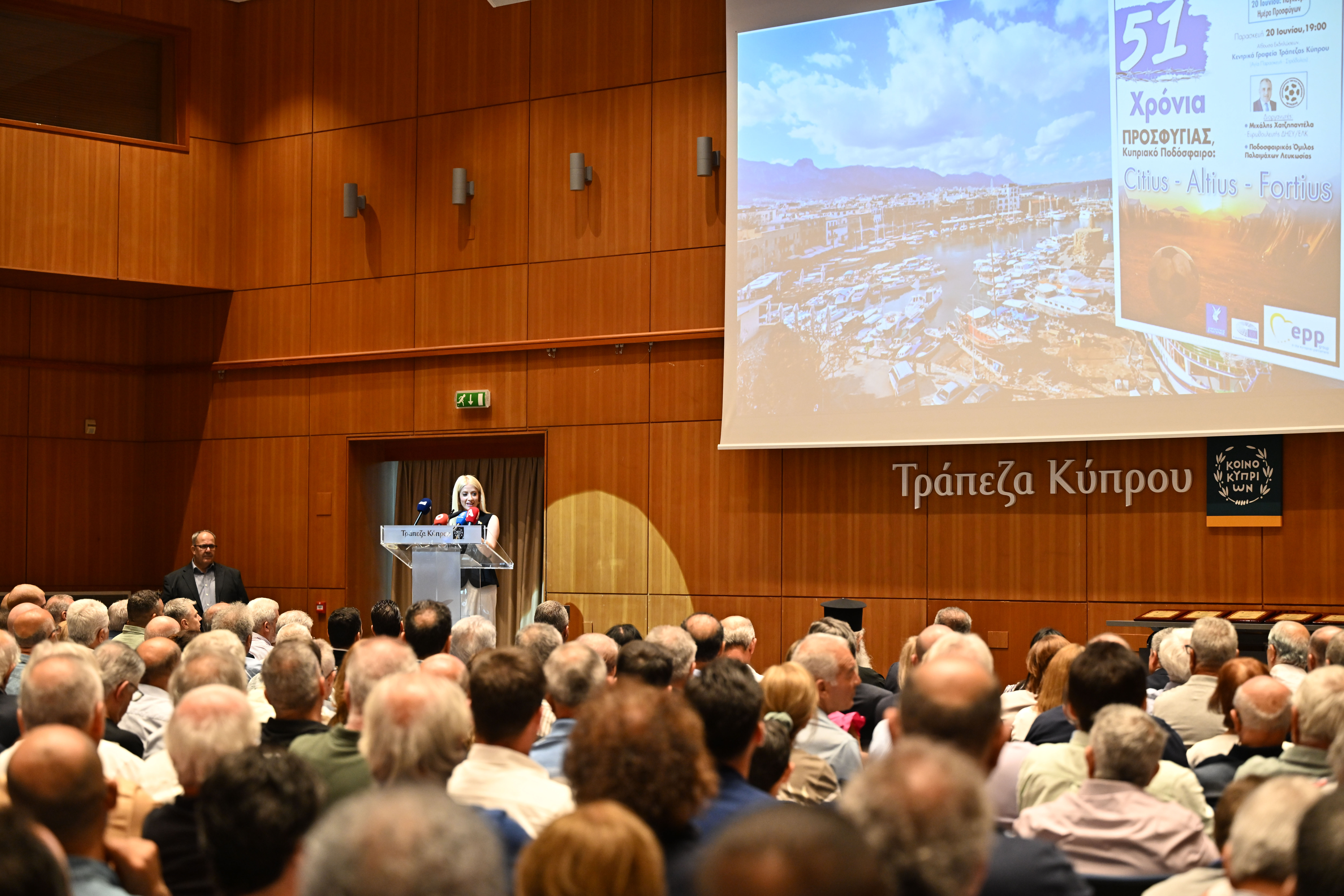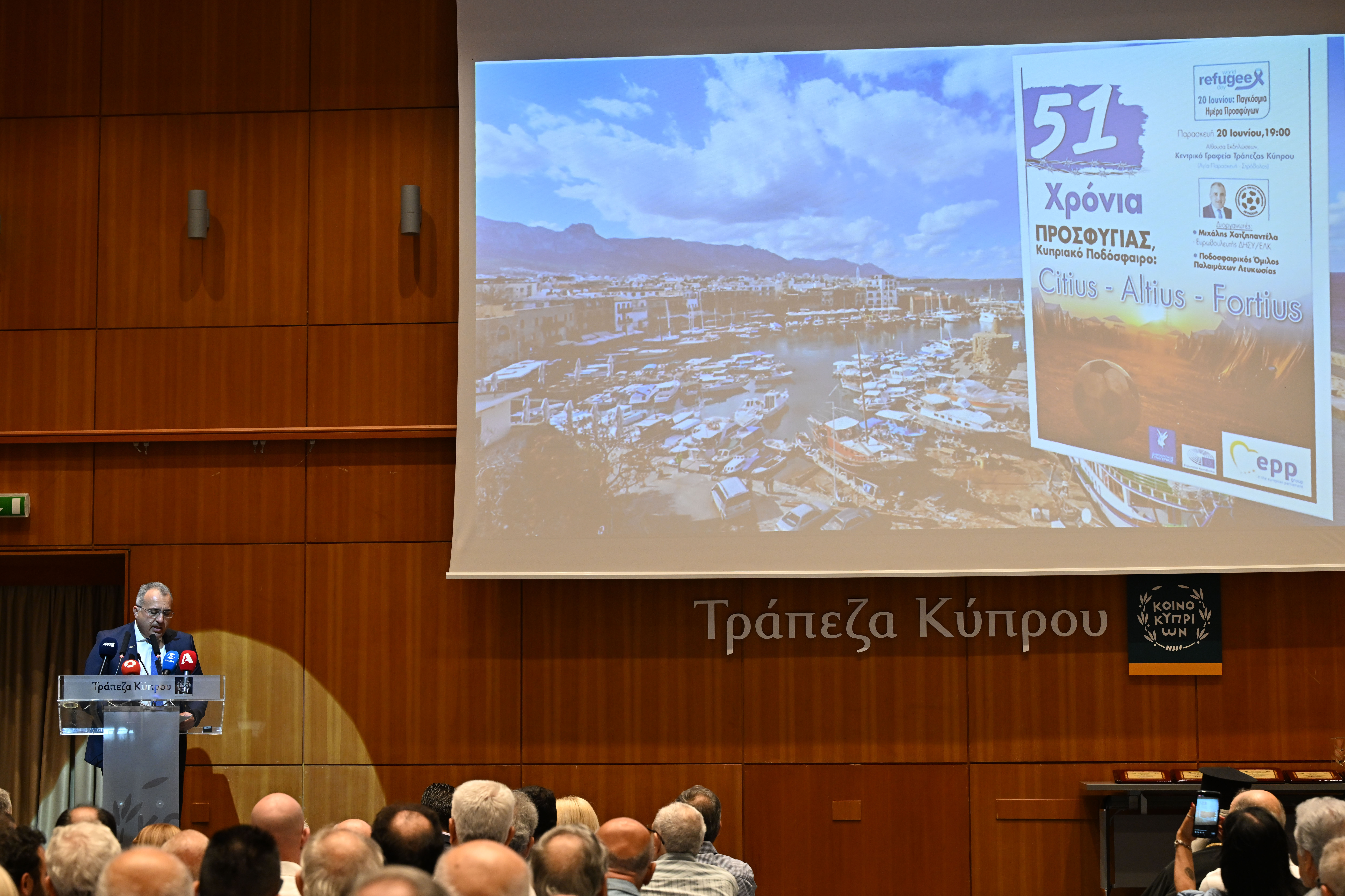 Ανήμερα της Παγκόσμιας Ημέρας Προσφύγων, το νοσταλγικό συναπάντημα για να τιμηθεί ο αθλητικός κόσμος της προσφυγιάς της Επαρχίας Λευκωσίας και Κερύνειας, συγκίνησε και συγκλόνισε. Η εκδήλωση «51 Χρόνια Προσφυγιάς, Κυπριακό Ποδόσφαιρο: Citius - Altius - Fortius», ξύπνησε τον νόστο και τη θέληση για επιστροφή στις κατεχόμενες περιοχές μας και μαζί τον πόνο που άφησε πίσω του ο ξεριζωμός από την τουρκική εισβολή του 1974.